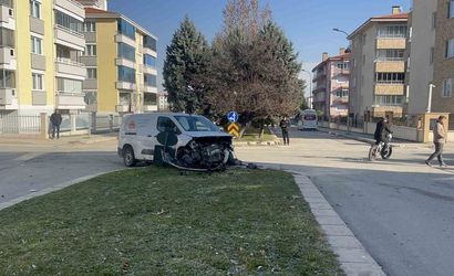 Eskişehir'de bir ticari aracın otomobile çarpması sonucu meydana gelen trafik kazası, güvenlik kamerasına anbean yansıdı. Kazada bir kadın sürücü yaralandı.