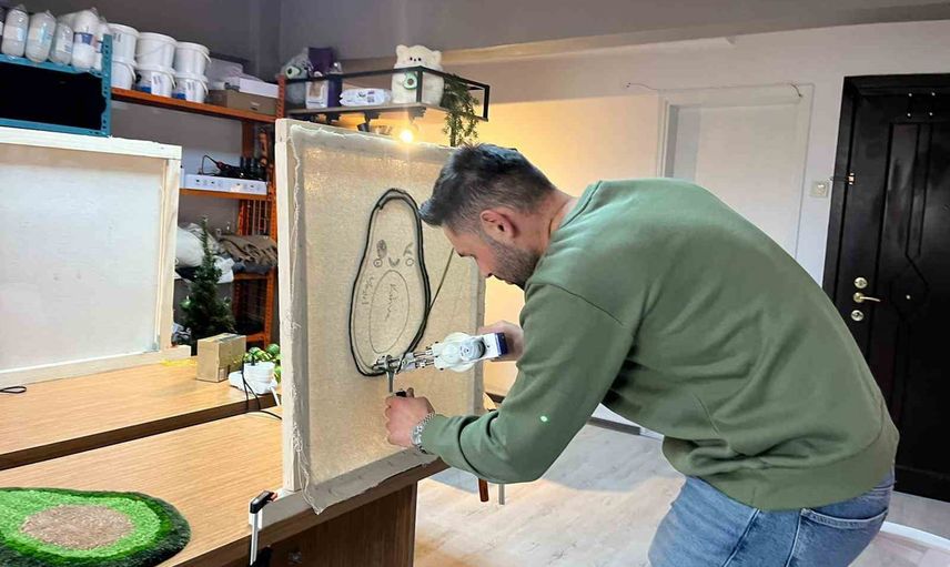 Eskişehir'de 32 yaşındaki girişimci Emre Aral, tüm birikimiyle açtığı tufting atölyesinde, gelen kişilere bu geleneksel zanaatı öğretiyor. Hoşnudiye Mahallesi'nde kurduğu atölyede, vatandaşlar hem eğleniyor hem de hayallerindeki figürleri kumaşa dökme fırsatı buluyor.