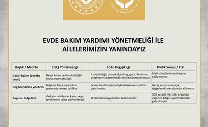 Evde Bakım Yardımı Yönetmeliği’nde Önemli Değişiklikler