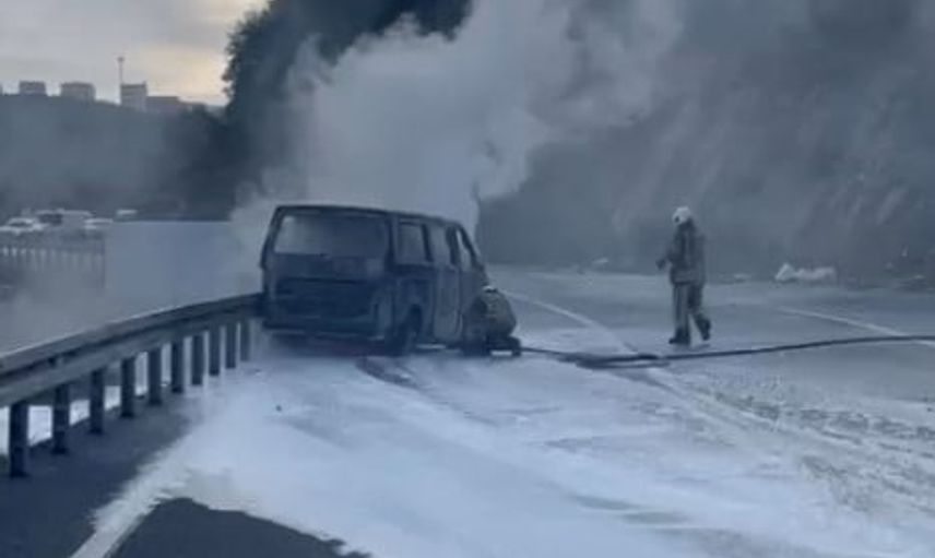 Alınan bilgilere göre, aracın motor kısmından yükselen duman, kısa sürede alevlere dönüştü. Sürücü, durumu fark edip minibüsü yol kenarına çekti ve hemen araçtan çıkarak kendini güvenli bir alana attı.