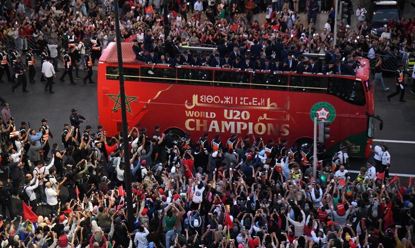 FIFA 20 Yaş Altı Dünya Kupası'nı kazanan Fas genç milli takımının oyuncuları, büyük coşkuyla karşılandı. Takım, 20 Ekim'de Şili'de gerçekleşen finalde Arjantin'i 2-0'lık skorla yenerek bu büyük başarıyı elde etti.