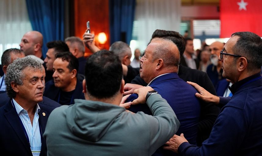 Fenerbahçe Kulübü Yüksek Divan Kurulu toplantısında, eski başkanlardan Aziz Yıldırım ile eski yönetici Hamdi Akın arasında tartışma yaşandı. Aziz Yıldırım ile Hamdi Akın'ın konuşmaları sırasında salonda bulunan üyeler arasında tartışma çıktı. Fenerbahçe Kulübü Başkanı Saadettin Saran (ortada), üyeleri sakinleştirmeye çalıştı.