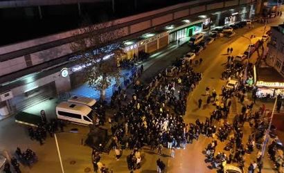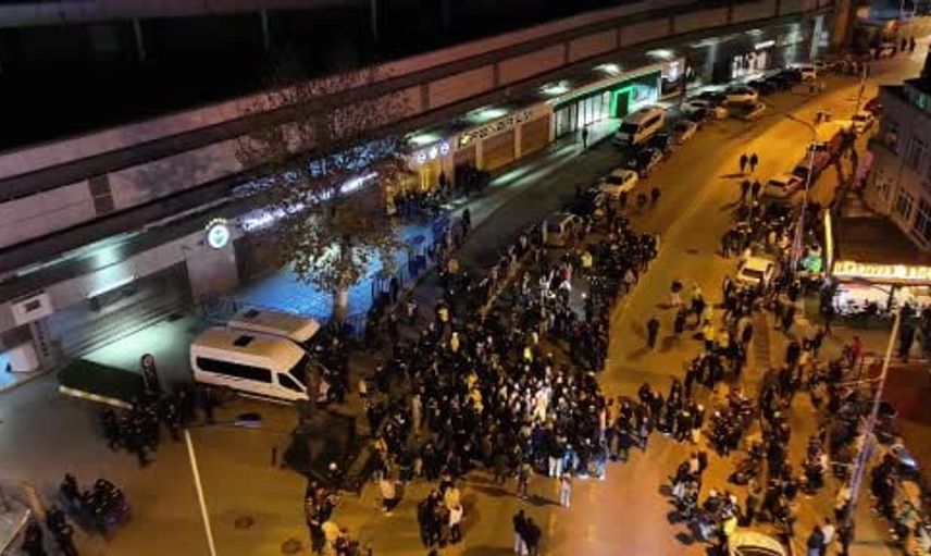 Fenerbahçeli taraftarlar, gözaltına alınan Fenerbahçe Başkanı Sadettin Saran’a destek vermek amacıyla stat önünde bir araya geldi.