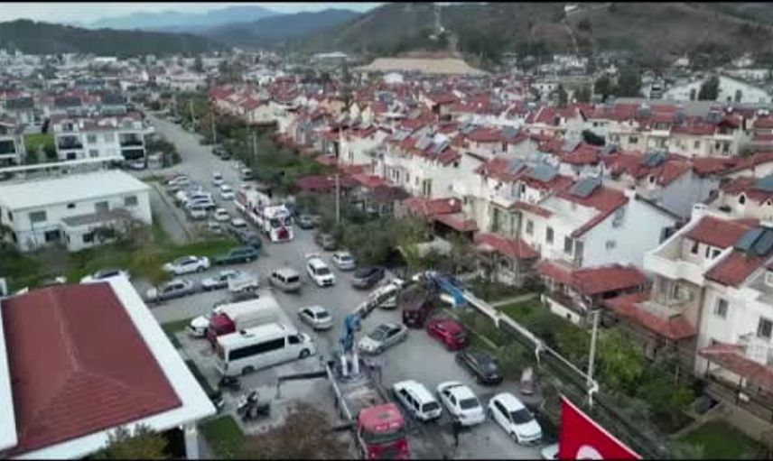Fethiye ve Seydikemer ilçelerinden birçok davetlinin katıldığı düğün töreninde cam vitrin, özel bir tırla gelin alma işleminde kullanıldı. Gelin Merve Sarıman, dualar eşliğinde cam vitrine yerleştirilerek, vinçle tırdan indirildi.