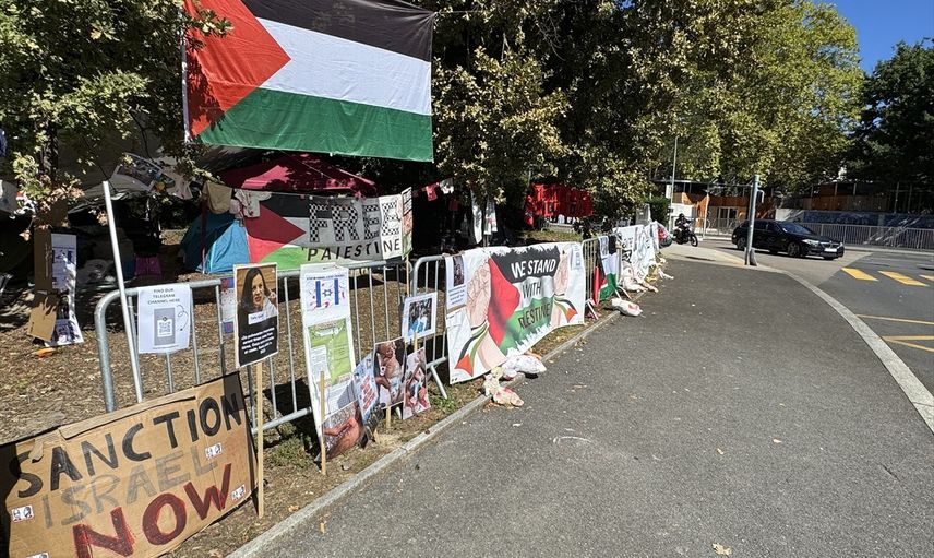 Farklı ülkelerden onlarca Filistin destekçisi aktivist, Gazze'de yaşananlara tepki göstermek ve uluslararası toplum ile kuruluşları bu konuda harekete geçirmek için Birleşmiş Milletler (BM) Cenevre Ofisi önünde çadır eylemi başlattı. Sivillere yönelik silahlı şiddete karşı mücadeleyi simgeleyen kırık sandalye heykelinin hemen yanında çadır kuran eylemciler, Gazze'de yaşananları "soykırım" olarak niteleyerek, bunun durdurulması için adım atılmasını istiyor. Eylemciler, çadırların bulunduğu alana Gazze'de, İsrail saldırılarında öldürülen çocukları simgelemek adına çocuk maketleri, kanlı çocuk elbiseleriyle ayakkabılar astı. İsrail'e karşı uluslararası yaptırım çağrısında bulunan göstericiler, Gazze’ye askeri koruma gerektiğini de ifade ediyor.