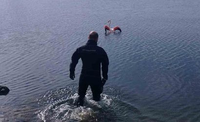 İnciraltı Kent Ormanı’nda deniz kıyısında mahsur kalan flamingonun ayağına ip dolandığı ihbarı üzerine harekete geçen İzmir İtfaiyesi Su Altı ve Su Üstü Arama Kurtarma Birimi dalgıçları, flamingonun vücuduna dolanan ipleri güvenli bir şekilde çıkardı. İlk kontrollerde sağlık durumu iyi olduğu belirlenen flamingo, tekrar doğasına salındı.