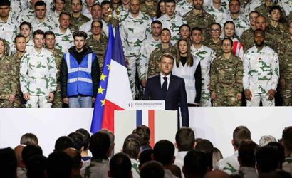 FRANSA CUMHURBAŞKANI EMMANUEL MACRON, AUVERGNE-RHÔNE-ALPES BÖLGESİNDEKİ ISERE ŞEHRİNDE BULUNAN 27. DAĞ PİYADE TUGAYI'NDA "GÖNÜLLÜ, TAMAMEN ASKERİ VE ULUSAL HİZMET" SİSTEMİNİ DUYURDU.