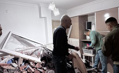 İzmir'in Bayraklı ilçesinde, freni boşalan kamyon 4 katlı bir apartmanın giriş katındaki dairenin duvarına çarptı.