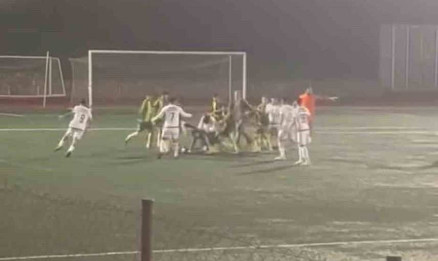 İlk olarak, sahanın ortasında başlayan sözlü tartışma, kısa sürede fiziksel bir kavgaya dönüştü. Futbolcular, birbirlerine tekme ve yumruklarla saldırmaya başladı. O anlar, tribündeki bir seyirci tarafından cep telefonu kamerasıyla kaydedildi.