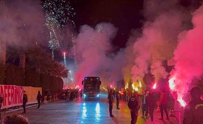 Takım otobüsünü gören taraftarlar, meşaleleri yakarak UEFA Şampiyonlar Ligi müziğini hoparlörden açtı. Görsel bir şölen oluşturan taraftarlar, havai fişek gösterileriyle coşkularını artırdı. Teknik Direktör Okan Burak ve futbolcular, otobüsten indiğinde taraftarlar yoğun ilgi göstererek imza ve fotoğraf çektirdi.