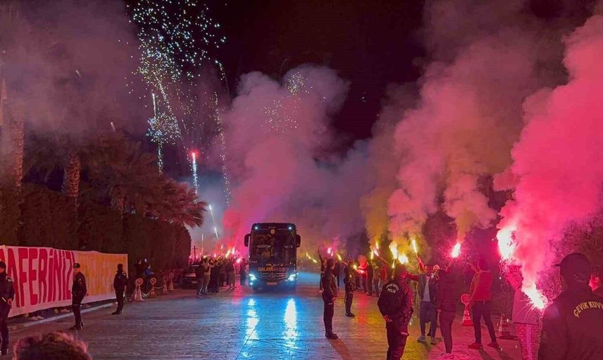 SÜPER LİG’İN 16’NCI HAFTASINDA YARIN DEPLASMANDA ANTALYASPOR İLE KARŞILAŞACAK OLAN GALATASARAY, ANTALYA’YA GELDİ. HAVALİMANINDAN KONAKLADIKLARI OTELE GEÇEN SARI KIRMIZILILARI TARAFTARLAR ŞAMPİYONLAR LİGİ MÜZİĞİ EŞLİĞİNDE MEŞALELER İLE KARŞILADI.