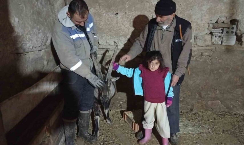 SİVAS’IN GÜRÜN İLÇESİNDE YAYLADA KOYUN OTLATAN MÜCAHİT DİKENOVA, YARALI HALDE BULDUĞU DAĞ KEÇİSİNİ KADERİNE TERK ETMEDİ. AHIRINA GÖTÜREREK BAKIMINI YAPTIĞI VE YARALARINI TEDAVİ ETMEYE ÇALIŞTIĞI DAĞ KEÇİSİ, AİLENİN MASKOTU OLDU.