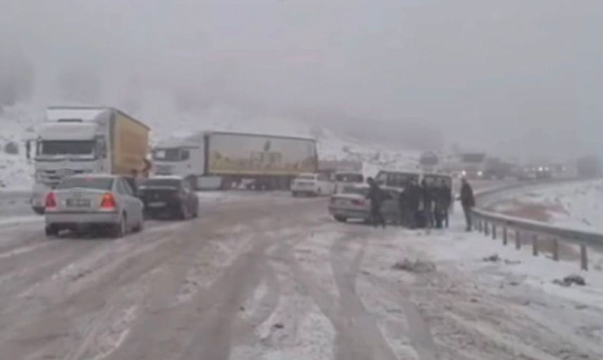 Gaziantep’in Araban kara yolundaki Karadağ geçidi yoğun kar yağışı nedeniyle araçların mahsur kalmasına neden oldu.