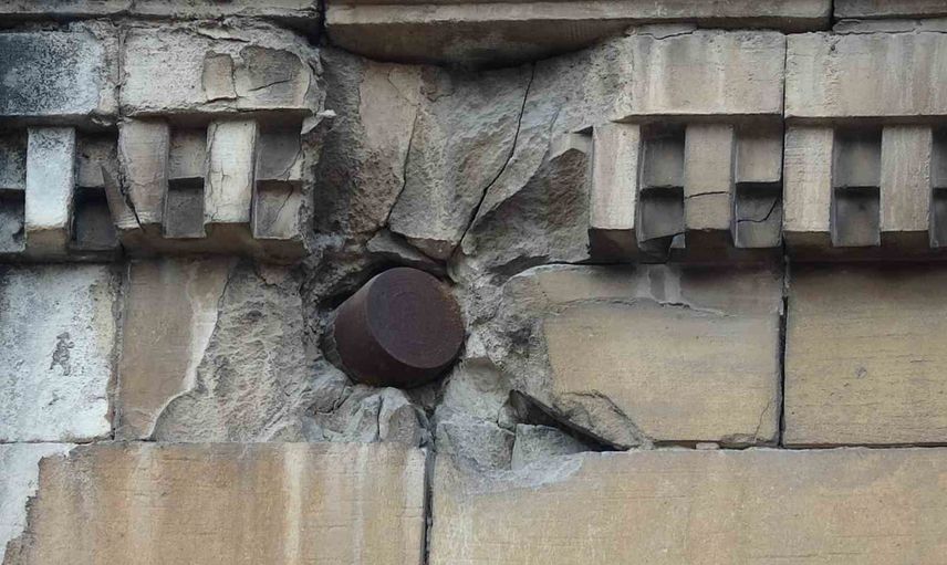 İŞGALCİ FRANSIZ ASKERLERİNİN GAZİANTEP SAVUNMASI DÖNEMİNDE TARİHİ BOYACI CAMİİ CEMAATİNE ATTIĞI TOP MERMİSİ PATLAMAMIŞ ŞEKİLDE 104 YILDIR CAMİ KARŞISINDAKİ EVİN DUVARINDA DURUYOR.