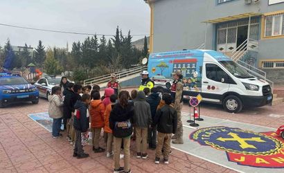 Gaziantep’te, jandarma ekipleri, mobil trafik eğitim aracı kullanarak 126 ilkokul öğrencisine kapsamlı bir trafik bilgilendirme programı sundu.