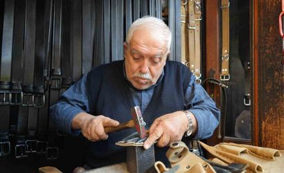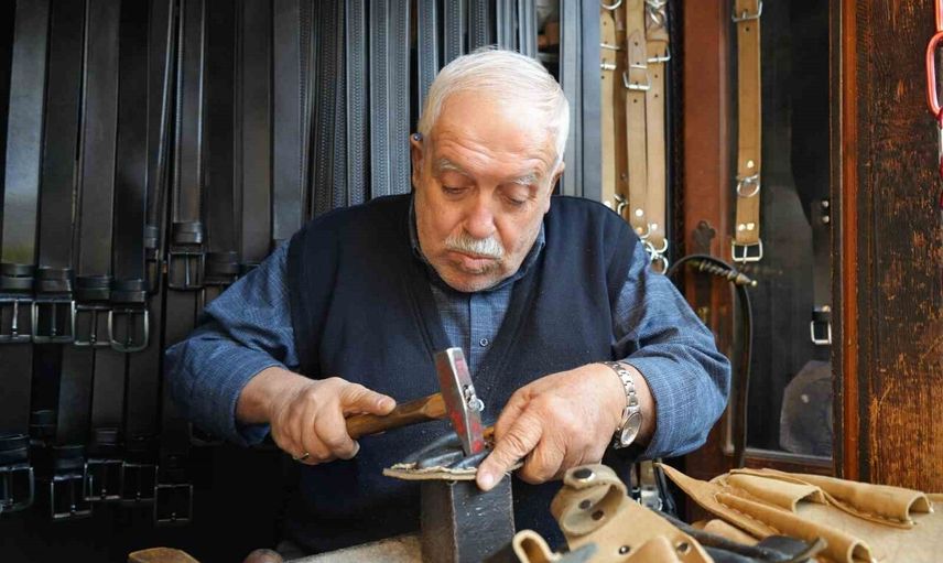 GAZİANTEP’TE 48 YILLIK SARACİYE USTASI ÖKKEŞ ÖZSABANCIOĞLU, BAKIRCILAR ÇARŞISI’NDAKİ 2 METREKARELİK DÜKKANINDA EL EMEĞİ ÜRÜNLER ÜRETİYOR