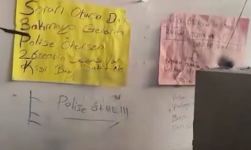 Baskın yapılan adreslerde yapılan aramalarda, dijital materyallerin yanı sıra silah ve suç unsuru taşıyan çeşitli malzemeler de ele geçirildi. Özellikle bir fuhuş yuvasında yer alan duvara asılmış broşürde dikkat çeken ifadeler yer aldı. Duvara yazılan bu ifadelerde, 'Polise konuşursan 25 bin sana, 25 bana para cezası var. Sakın konuşma. Soran olursa daire bakmaya geldim. Polise ötersen 26 bin TL cezası var. Polise ötme, polise ötersen kişi başı 26 bin TL cezası var' gibi tehditkar yazılar, operasyonun boyutunu gözler önüne serdi.