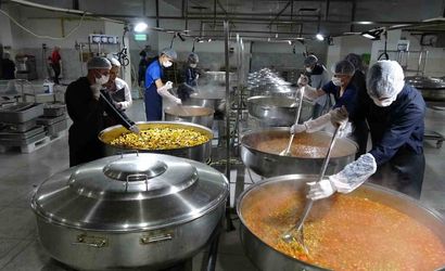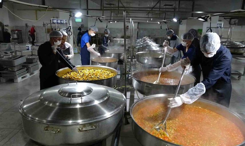 GAZİANTEP'TEKİ GAHİB HALICILIK VE DIŞ TİCARET MESLEKİ VE TEKNİK ANADOLU LİSESİ'NDE GÜNLÜK 12 BİN KİŞİYE YEMEK HAZIRLANIYOR.