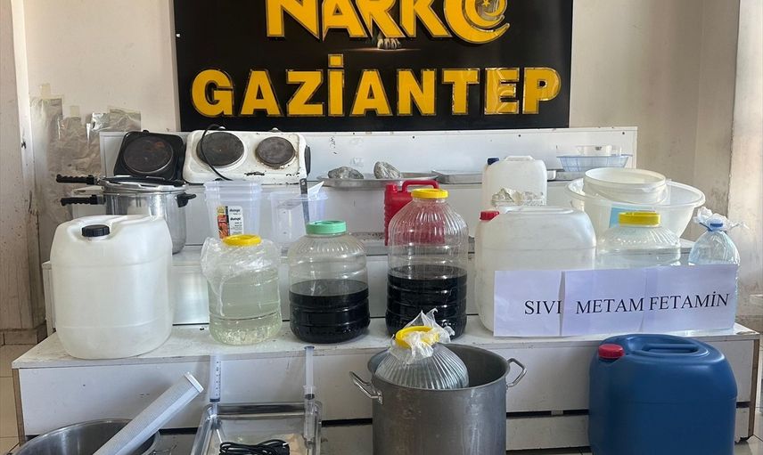 Gaziantep'te uyuşturucu imalatı yapanlara yönelik operasyonda gözaltına alınan 3 şüpheli tutuklandı. Yapılan aramada, 18 litre sıvı sentetik uyuşturucu, 2 kilo 550 gram sentetik uyuşturucu ile uyuşturucu yapımında kullanılan malzemeler ele geçirildi.