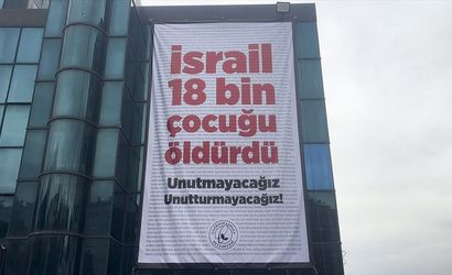 Gaziosmanpaşa Belediye binasına, Filistin'de yaşamını yitiren 18 bin çocuğun adının yer aldığı afiş asılarak ölen çocuklar anıldı.
