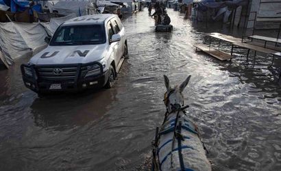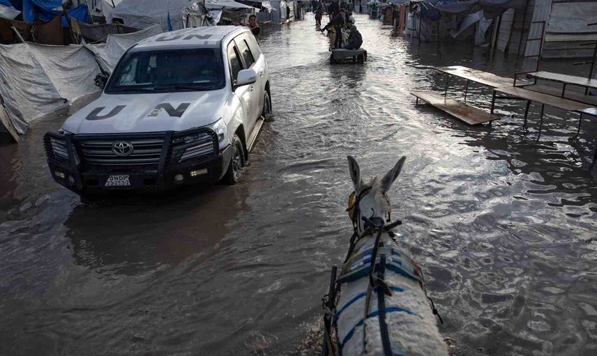GAZZE ŞERİDİ'NDE ETKİLİ OLAN BYRON FIRTINASI NEDENİYLE 12 KİŞİ HAYATINI KAYBETTİ, 27 BİNDEN FAZLA ÇADIR KULLANILAMAZ HALE GELDİ.