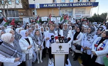 Kocaeli'de AK Parti Kadın Kolları tarafından "Gazze için Sessiz Çığlık" etkinliği düzenlendi. Türk ve Filistin bayraklarıyla İl Başkanlığı önüne gelen katılımcılar, el ele tutuşarak sessiz zincir oluşturdu.