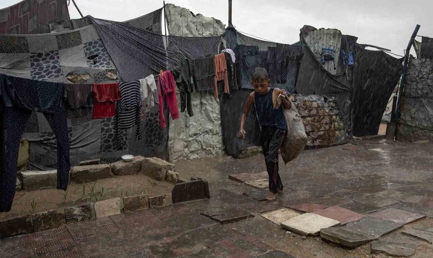Gazze Şeridi’nde etkili olan şiddetli yağışlar, İsrail'in sürdürdüğü saldırılar sonucunda zor durumda kalan Filistinlilerin yaşadığı çadırları sular altında bıraktı. Sabaha karşı başlayan yoğun yağışlar, Deir el-Balah kentindeki El-Nakheel kampında büyük hasara yol açtı.