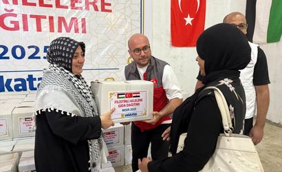 Yardım ekibi, 300 Gazzeli aileye gıda kumanyası dağıtarak, ihtiyaç sahiplerinin temel ihtiyaçlarını karşılamaya çalıştı.