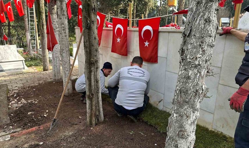 Gebze Belediyesi Mezarlık İşleri Müdürlüğü ekipleri, şehitlik alanındaki ağaçların mevsimsel budamasını yaparak, zamanla yıpranan çimleri yeniledi ve genel temizlik çalışmaları yürüttü. Bu sayede, şehitlik ziyaretçileri için daha düzenli bir alan sunulmuş oldu.
