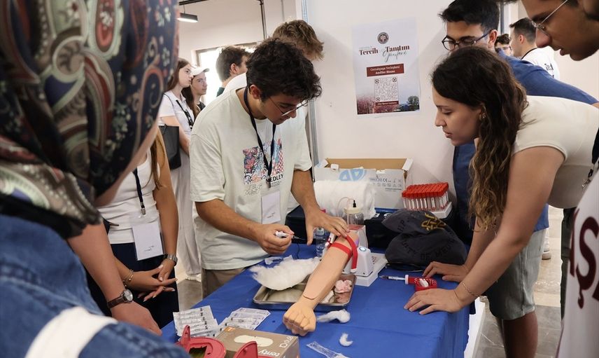 Fakülte turunun ardından katılımcılar, 8 farklı istasyonda tıbbi beceri uygulamaları gerçekleştirdi. Dikiş atma, Heimlich manevrası, kalp masajı, hava yolu ve solunum desteği, enjeksiyon, kan alma, ateş ve tansiyon ölçme gibi hayati becerilere yönelik pratik eğitim aldılar.