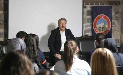 Melikgazi Belediye Başkanı Doç. Dr. Mustafa Palancıoğlu, Kayseri Valiliği ve Melikgazi Belediyesi iş birliğiyle kurulan Mektep Melikgazi Sosyal Bilimler Okulu'nda eğitim gören öğrencilere kariyer tavsiyelerinde bulundu.