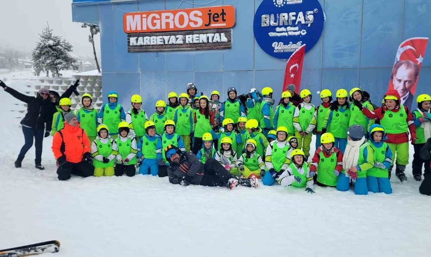 2026 yılına kadar gruplar halinde toplam 1200 öğrencinin yararlanacağı proje kapsamında, son grup Keles, Harmancık, İznik ve Karacabey’den gelen 200 çocuk oldu. Yaşları 10-15 arasında değişen bu öğrenciler, uzman eğitmenler eşliğinde kayak eğitimi alıyor ve serbest zaman etkinlikleriyle karın tadını çıkarıyor.