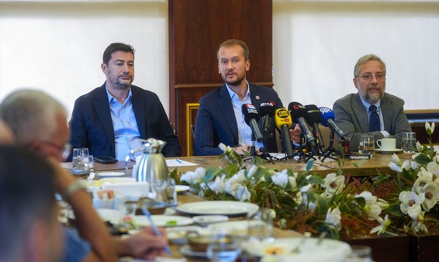 Gençlerbirliği yönetim kurulu üyeleri Aykut Çakmaklı (ortada), İsmail Geliç (solda) ve Hakan Kaynar (sağda), Ankara'da bir restoranda basın mensuplarıyla bir araya geldi.