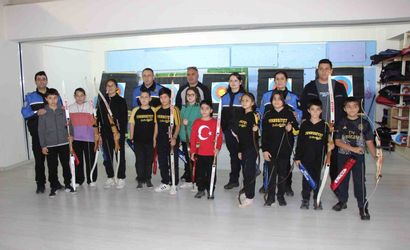 AMASYA’DA POLİSLERİN DESTEĞİYLE DÜZENLENEN KURSTA OKÇULUK EĞİTİMİNE KATILAN ÇOCUKLAR, OLİMPİYAT ŞAMPİYONU METE GAZOZ GİBİ DÜNYA ÇAPINDA BAŞARILI BİR SPORCU OLMAYI HAYAL EDİYOR.