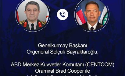 Genelkurmay Başkanı Orgeneral Selçuk Bayraktaroğlu, ABD Merkez Kuvvetler Komutanı (CENTCOM) Oramiral Brad Cooper ile bir telefon görüşmesi gerçekleştirdi.