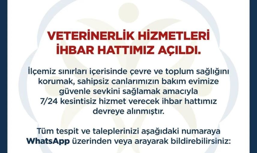 Vatandaşlar, ortaya çıkan olumsuz durumlar ya da sahipsiz hayvanlarla ilgili tespit ve taleplerini bu hat aracılığıyla doğrudan iletebilecekler. Yapılan bildirimlere dayalı olarak, belediye ekipleri gerekli müdahaleleri gerçekleştirecek.