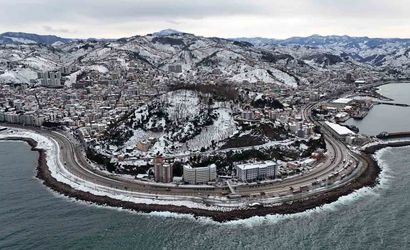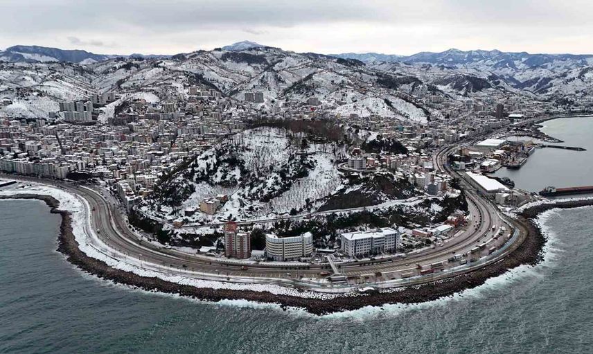 GİRESUN'DA ETKİLİ OLAN KAR YAĞIŞININ ARDINDAN ŞEHİR BEYAZ ÖRTÜYLE KAPLANIRKEN, ORTAYA ÇIKAN MANZARALAR DRON İLE GÖRÜNTÜLENDİ. KARADENİZ'İN MAVİSİYLE BÜTÜNLEŞEN BEYAZ ÖRTÜ, KENTE ADETA KARTPOSTALLARI ARATMAYAN GÖRÜNTÜLER KAZANDIRDI.