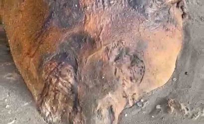 MARMARA DENİZİ’NDEN TEKİRDAĞ’IN SÜLEYMANPAŞA İLÇESİ BEYAZKÖY MEVKİİNDE KIYIYA VURAN VE ÇÜRÜMEYE BAŞLAYAN DENİZ CANLISI, VATANDAŞLARIN MERAK KONUSU OLDU.