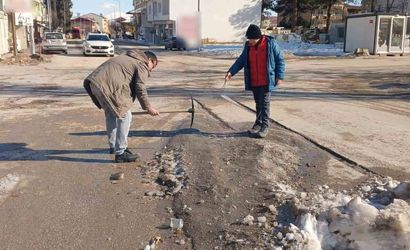 Kar yağışının ardından yaşanan don olayı, caddelerdeki kar kütlelerinin hem araçlara hem de yayalara sıkıntı yaşatmasına neden oldu. Durumu gözlemleyen esnaflar, zarar görmemek için harakete geçerek donmuş karları kazma ve kürekler aracılığıyla temizledi.