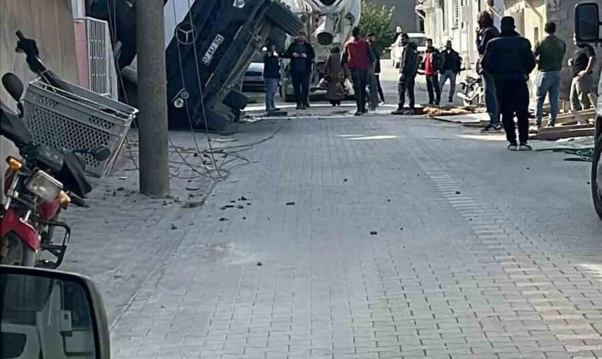 Gönen’de Yan Yatan Beton Mikseri Olayı