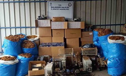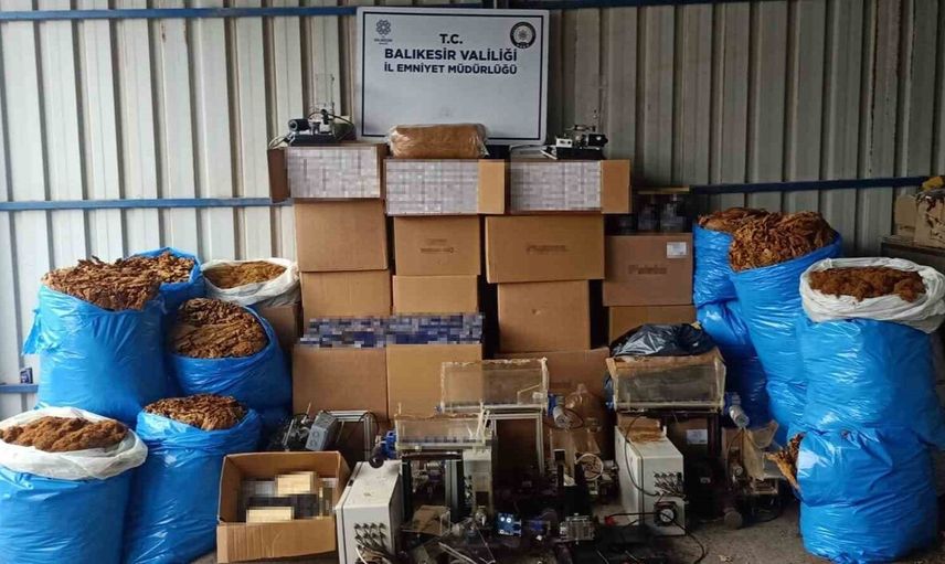 Yapılan aramalar sonucunda 233 bin adet boş makaron, 89 bin 730 adet dolu makaron, 405 kilogram açık tütün ve 9 adet elektrikli sigara sarma makinesi ele geçirilmiştir.