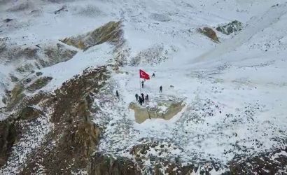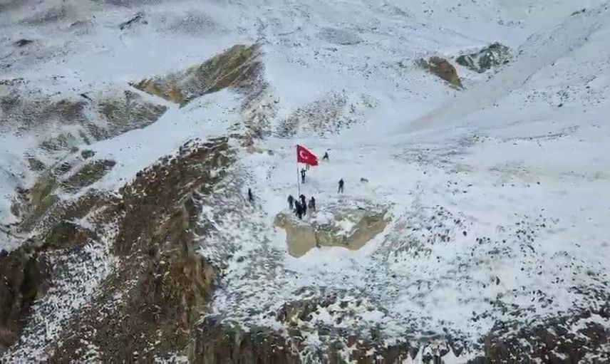 Erzurum’un Şenkaya ilçesinde bulunan Göreşken Mahallesi'nde, gençler vatanseverliklerini göstermek için köyün en yüksek noktasına Türk bayrağı dikti.