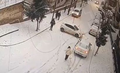 Gümüşhane'de yollardaki buzlanma nedeniyle iki aracın yokuş aşağı kayarak kaza yapma anları güvenlik kameralarına yansıdı.