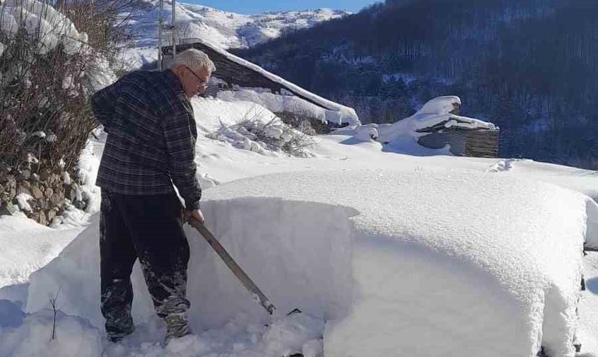 Gümüşhane merkeze bağlı Aktutan köyünde, kar kalınlığı yer yer 1,5 metreyi geçerek ev, samanlık ve ahırların çatılarında yoğun kar birikintileri oluşturdu. Kar yükünün ağırlığı nedeniyle çatıların çökme tehlikesi taşıdığı endişesi yaşayan köy sakinleri, zorlu koşullara rağmen çatılara çıkarak kar temizliği yapmaya başladı.
