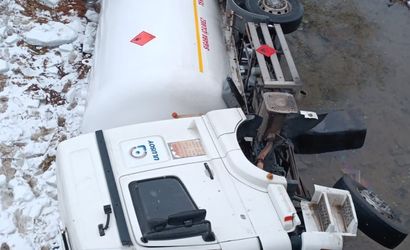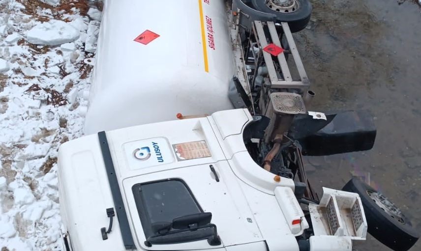 Gümüşhane'nin Kelkit ilçesinde, buzlu yolda kontrolden çıkarak dere yatağına devrilen LPG yüklü tanker, 34 DR 4897 plakası ile kaygan koşullarda gerçekleşti.