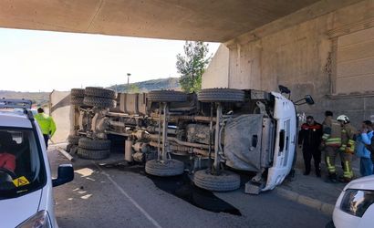 HATAY’DA SÜRÜCÜSÜNÜN KONTROLÜNÜ KAYBETMESİYLE DEVRİLEN HAFRİYAT KAMYONUN SÜRÜCÜSÜ YARALANDI.