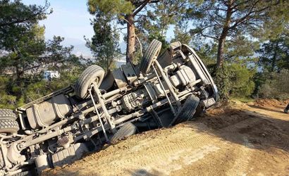 Toprak yolda ilerleyen kamyonun sürücüsü, direksiyon hakimiyetini kaybetmesinin ardından uçuruma düşerek kaza yaptı. Kaza neticesinde araçta sıkışan sürücü, bölgedeki itfaiye ekipleri tarafından başarılı bir şekilde kurtarıldı.