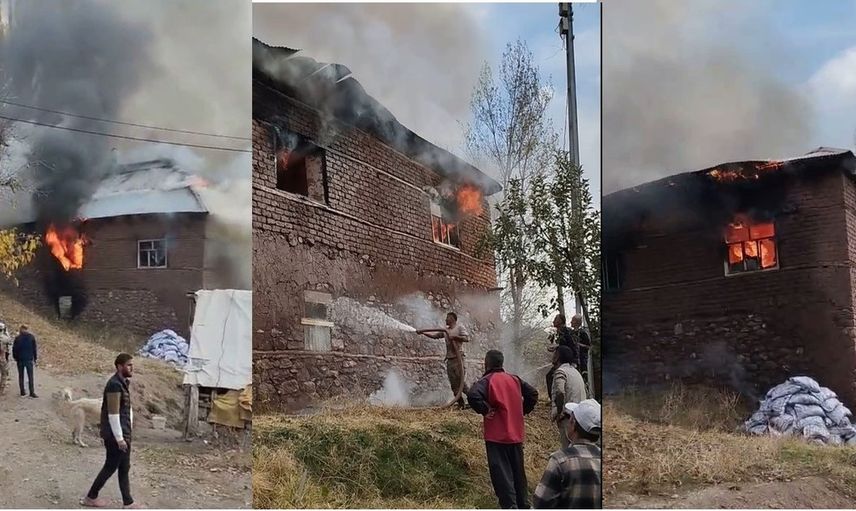 Hakkari'nin Geçitli köyünde, 2 katlı bir evde meydana gelen yangın itfaiye ekipleri tarafından söndürüldü.