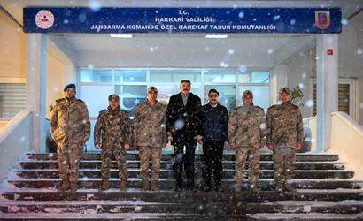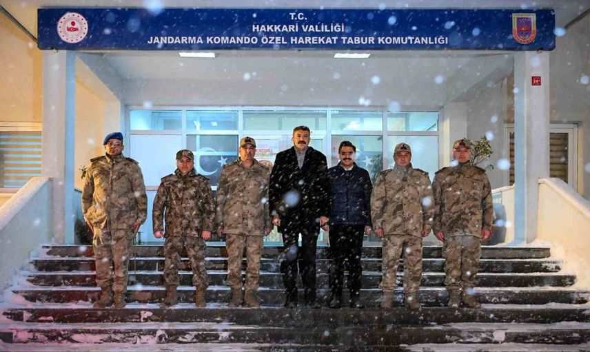 Hakkari Valisi Ali Çelik ve ekibi, ildeki güvenlik kontrol noktalarını ziyaret ederek, burada görev yapan güvenlik güçlerinin yeni yılını kutladı.