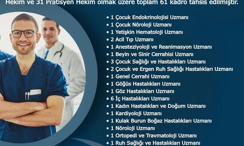 Devlet Hizmet Yükümlülüğü kapsamında, Hakkâri’ye önemli sayıda sağlık personeli kadrosu tahsis edildi. Bu çerçevede; çocuk endokrinolojisi, çocuk nöroloji ve yetişkin hematoloji branşlarında toplamda 27 uzman hekim ile 31 pratisyen hekim olmak üzere 61 hekim kadrosu Hakkâri’ye kazandırılmıştır.